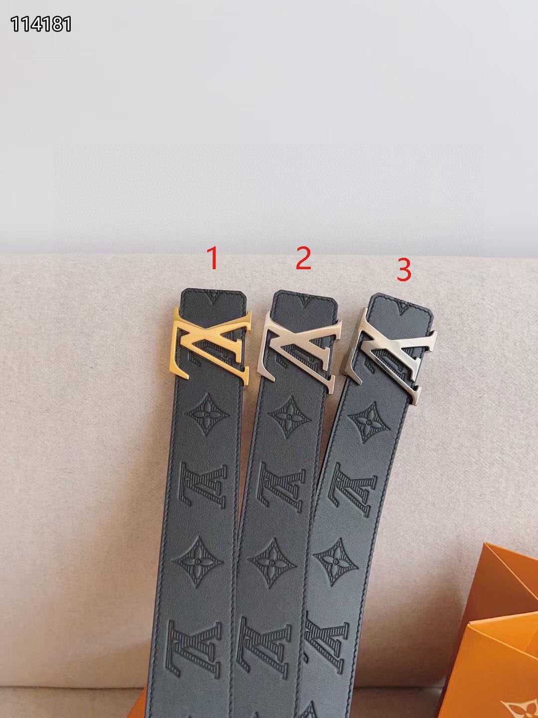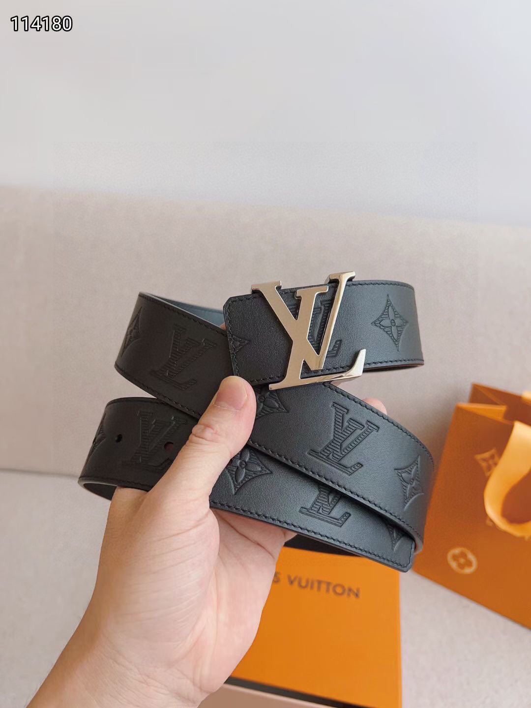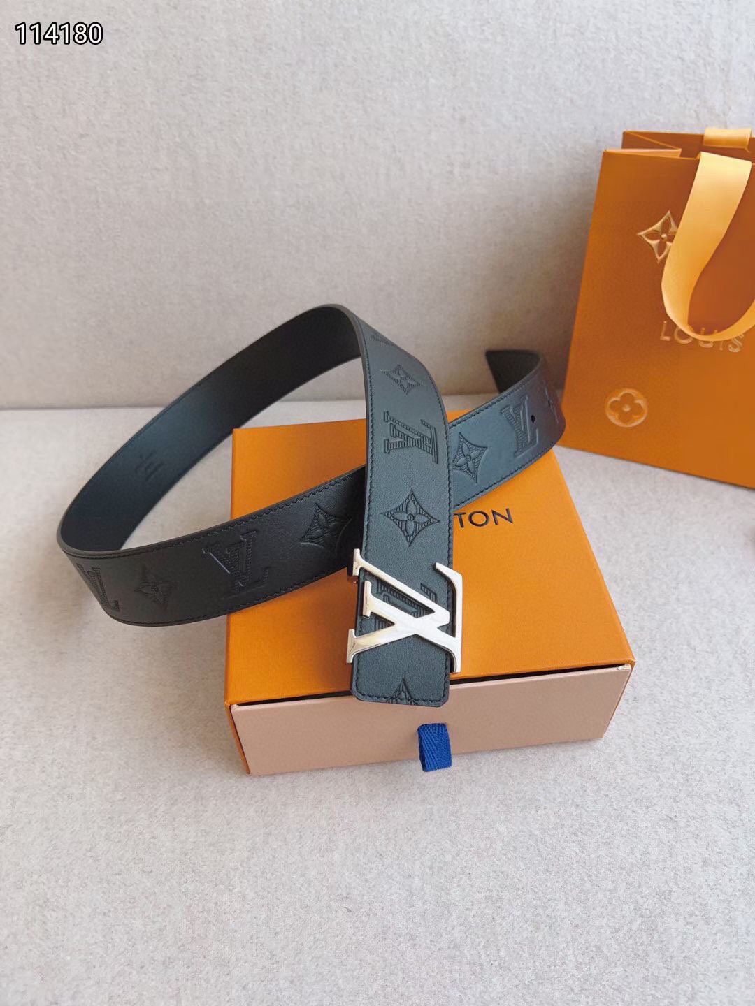 This LV buckle black textured belt combines the brand’s classic elements with modern design, showing unparalleled luxury and taste. Selected top-grade black leather, processed with exquisite craftsmanship, has a smooth and delicate surface, soft and comfortable touch. The metal buckle takes the brand’s iconic “LV” as the core design, which is unique and exquisite, highlighting the brand’s unique charm.