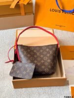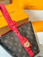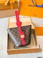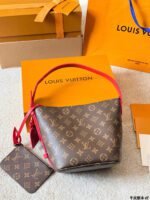 ✨ The iconic LV Monogram bucket bag features the signature Monogram canvas paired with contrasting leather trim, with a red striped interior lining for a vintage touch. It comes with a matching Monogram coin pouch, making the two-piece design both practical and elegant.