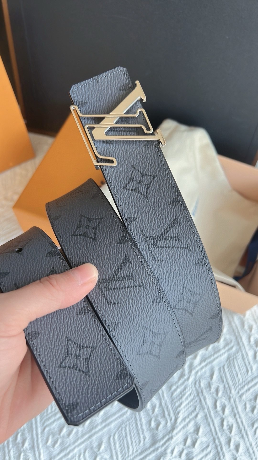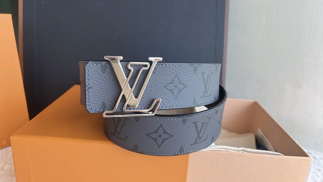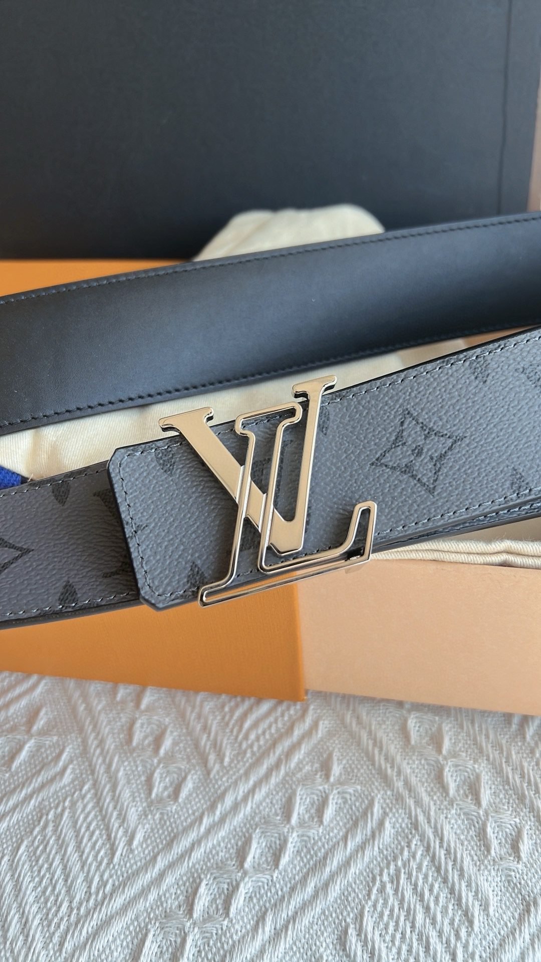 LV silver buckle black textured belt shows low-key and luxurious charm. The belt is made of high-quality leather, which is soft and comfortable to the touch and has good durability. The buckle part is designed with exquisite silver “LV” letters, highlighting the high-end and classic nature of the brand.