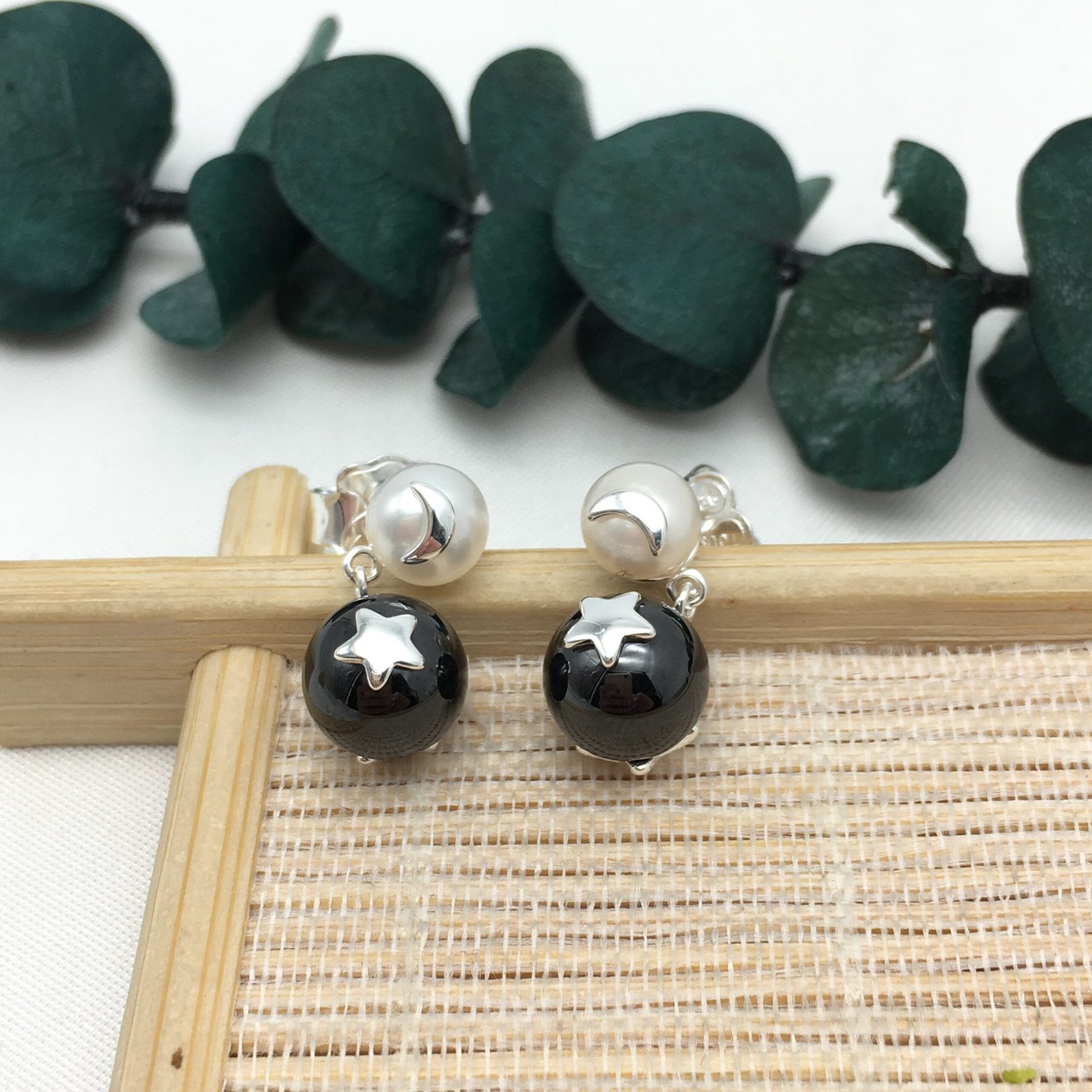Be the first to review “Magic Nature moon-star Earrings with pearl and onyx” Cancel reply