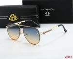 The frame of the glasses is designed with metal, and this color selection not only reflects a sense of luxury, but also makes the glasses more prominent visually. The smooth lines of the border not only provide comfort for wearing, but also add an overall sense of fashion. Lenses can provide better visual protection in sunlight and reduce eye fatigue. The legs of the glasses are decorated with patterns resembling wheel shapes, which is a classic element of the Maybach brand. It not only showcases the brand’s unique style, but also increases the recognition of the glasses. The “MAYBACH” brand logo is also printed at the end of the lens legs, further emphasizing the brand identity of this pair of glasses.