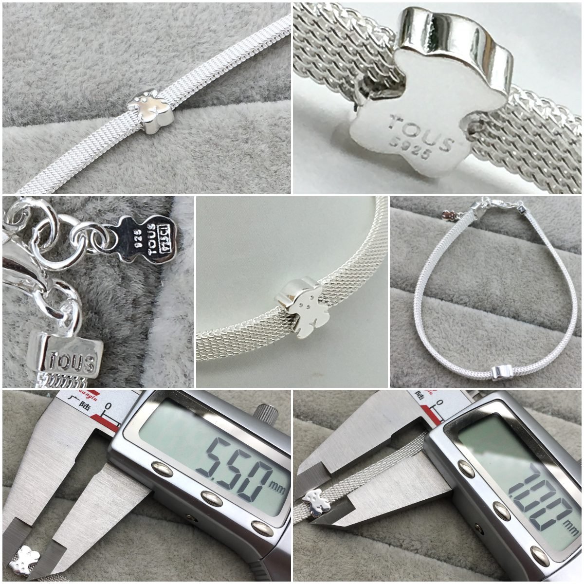 TOUS Mesh bracelet in sterling silver. Size of bear: 0.7 cm. Length: 16-17 cm.