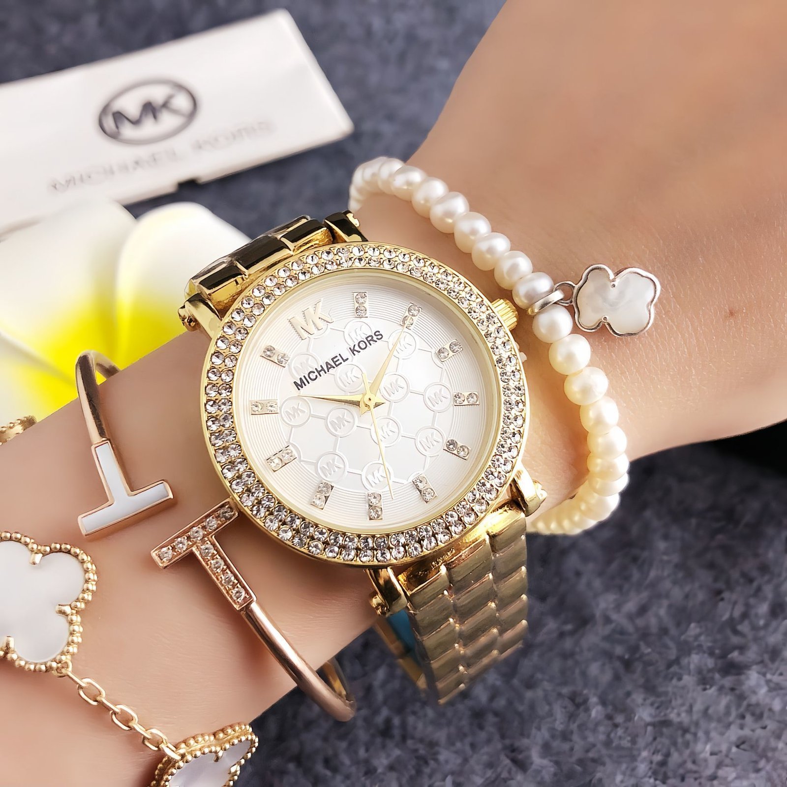 Michael Kors 2821Z series watches blend opulent glamour with modern style. Featuring round dials, the iconic MK branding, dazzling crystal embellishments, and sleek metal bracelets in tones like gold, silver, and two-tone, these timepieces showcase Michael Kors’ signature fusion of luxury and trendiness. Perfect for those who love bold, eye-catching accessories, they add a touch of radiant charm to any look, whether for special events or everyday fashion-forward styling.