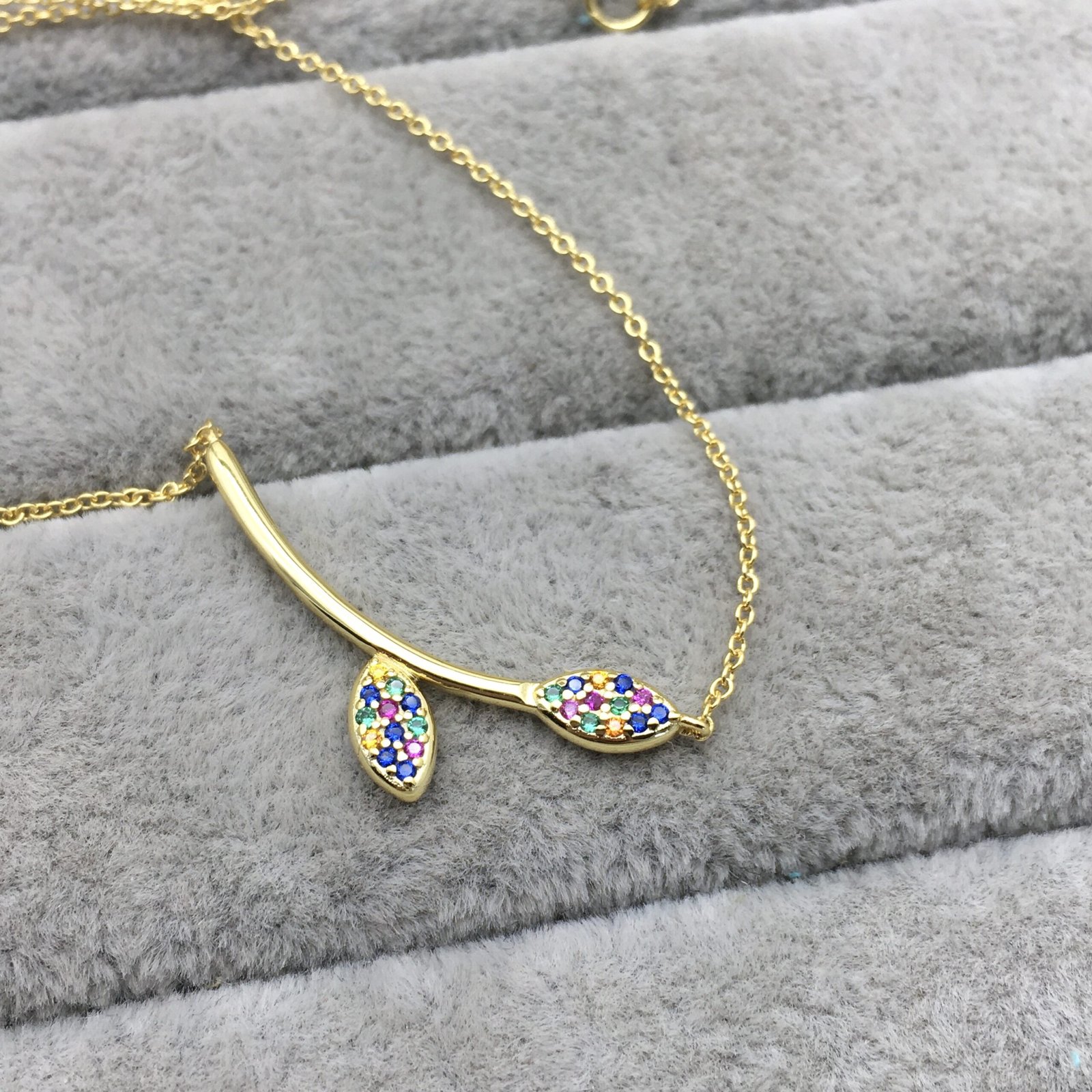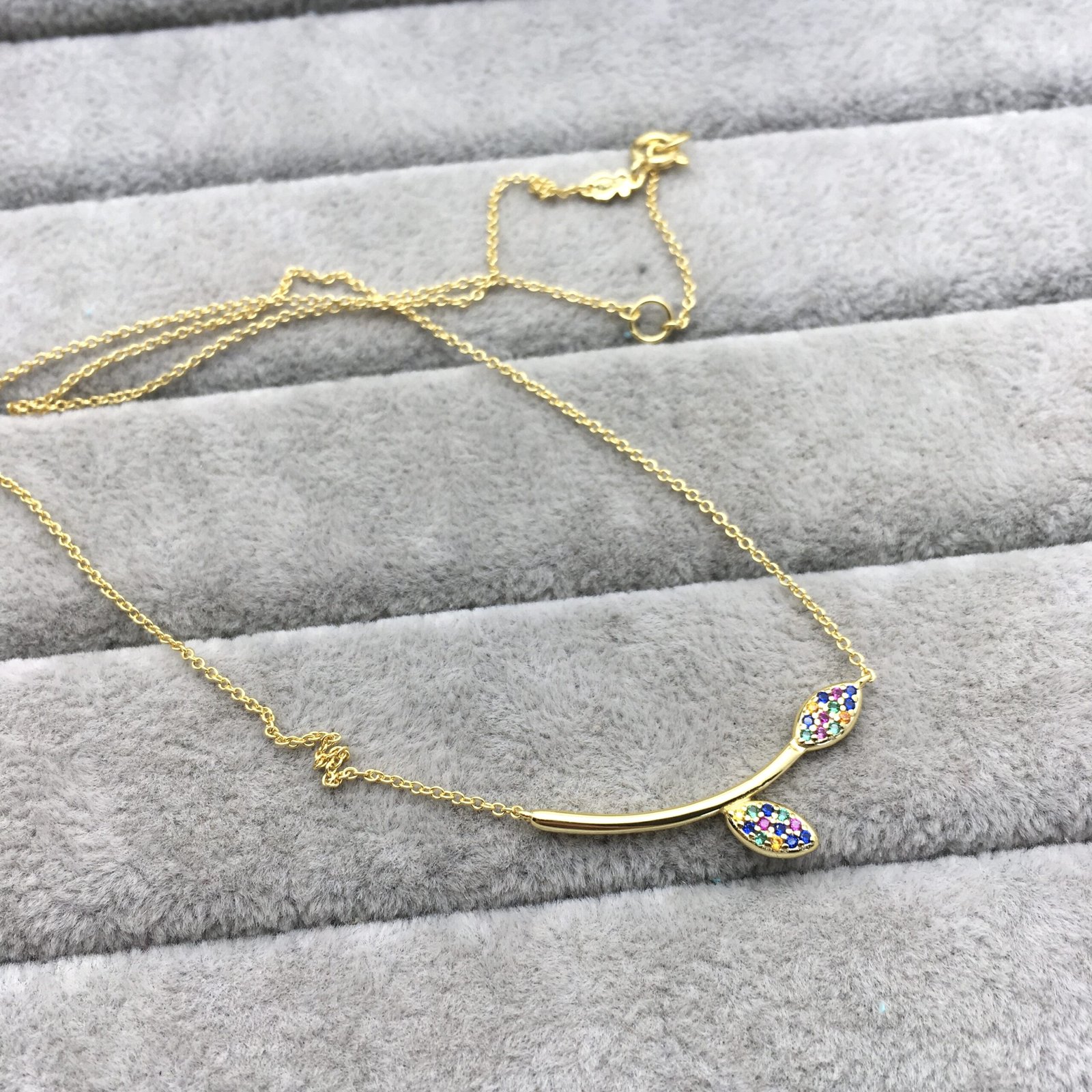 Vermeil Silver with Gemstones Real Mix Leaf Necklace $37.62