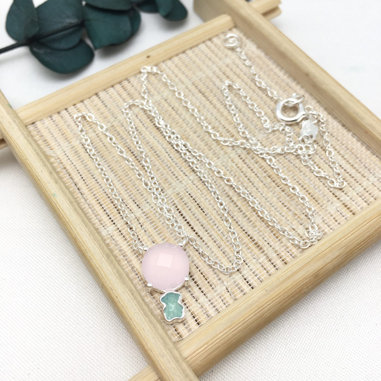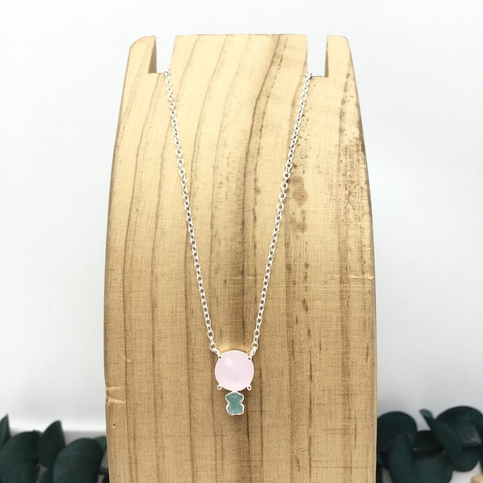 Mini Color Necklace in Silver with Pink Quartz and Amazonite