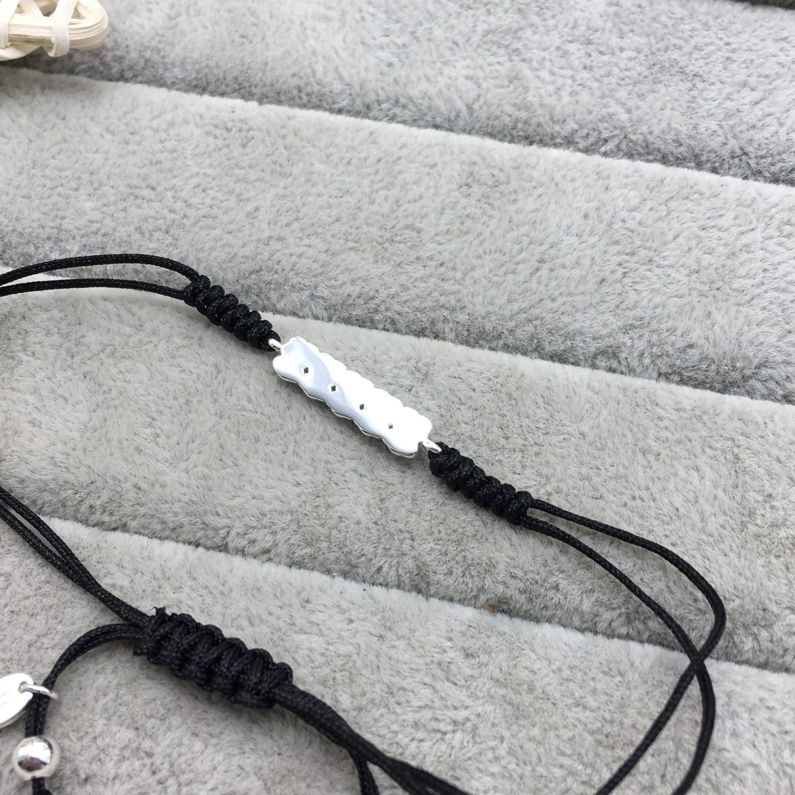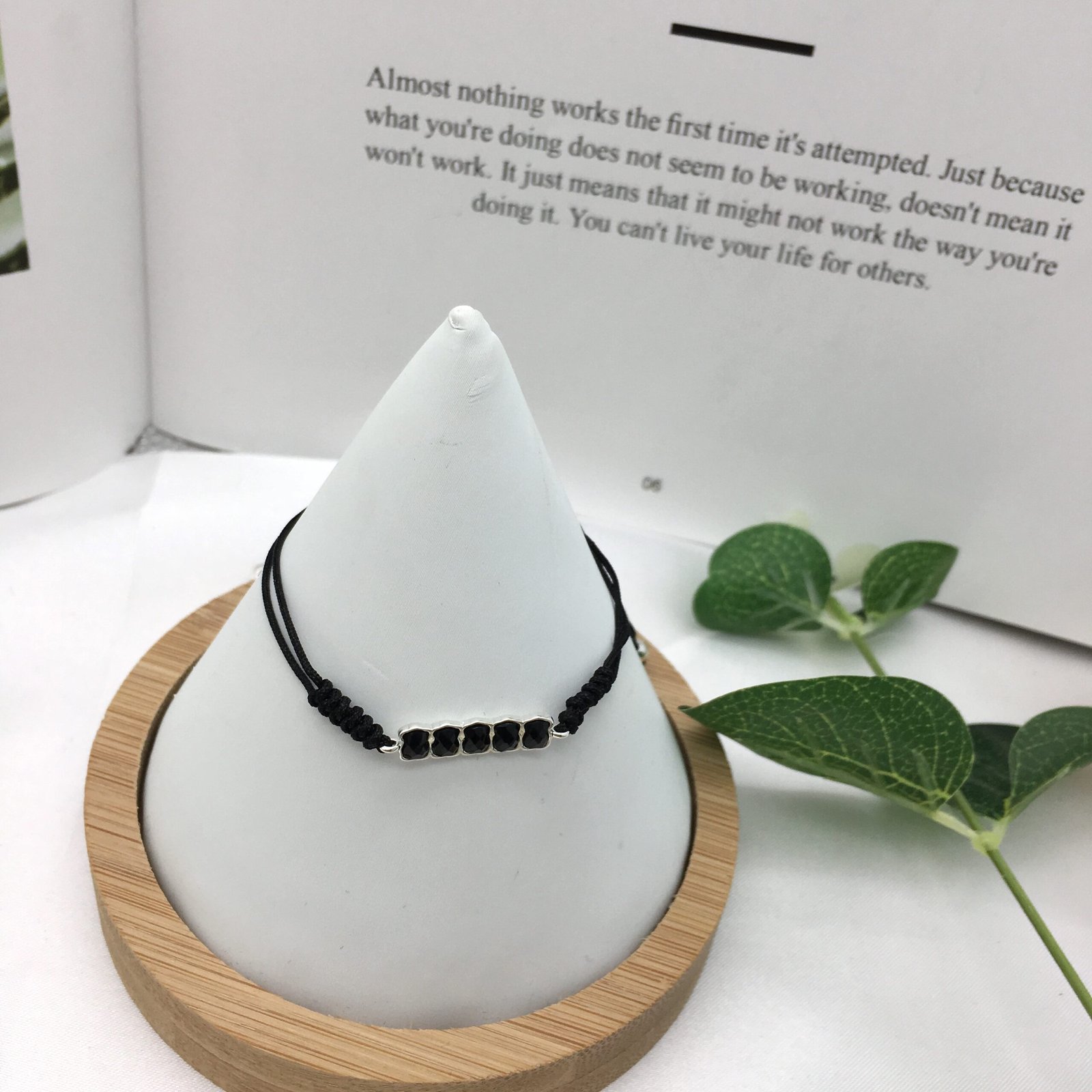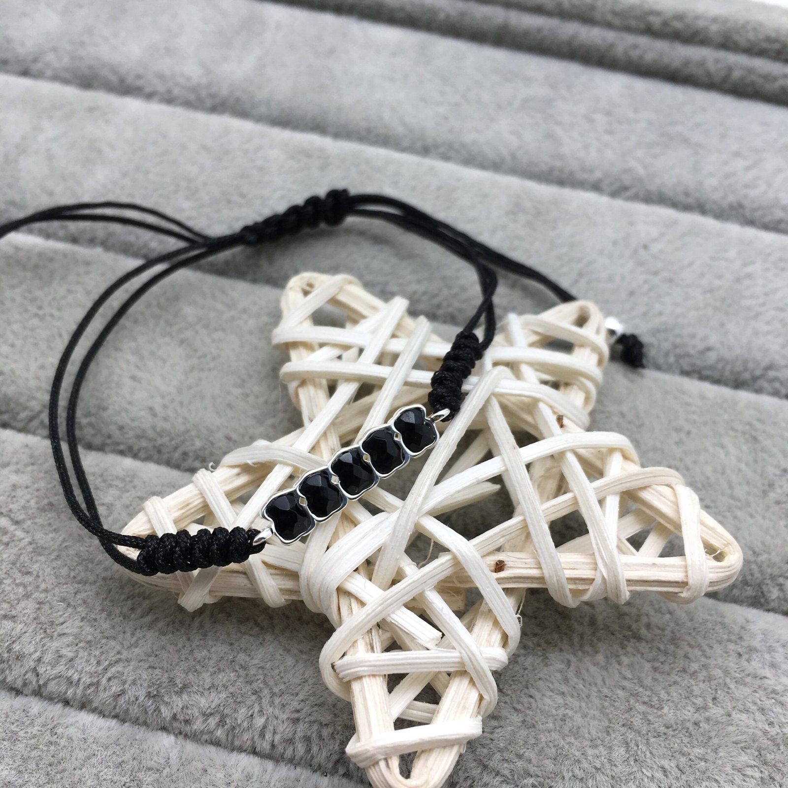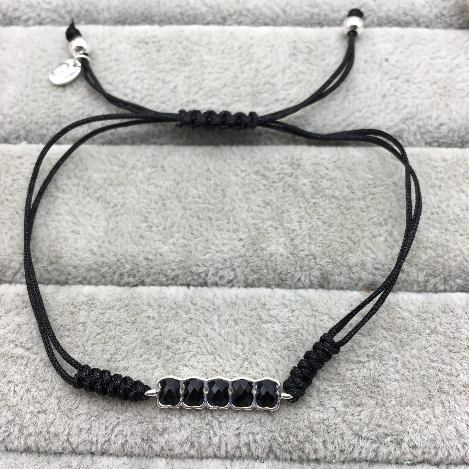 Mini Onix Bracelet in Silver with Onyx and black Cord