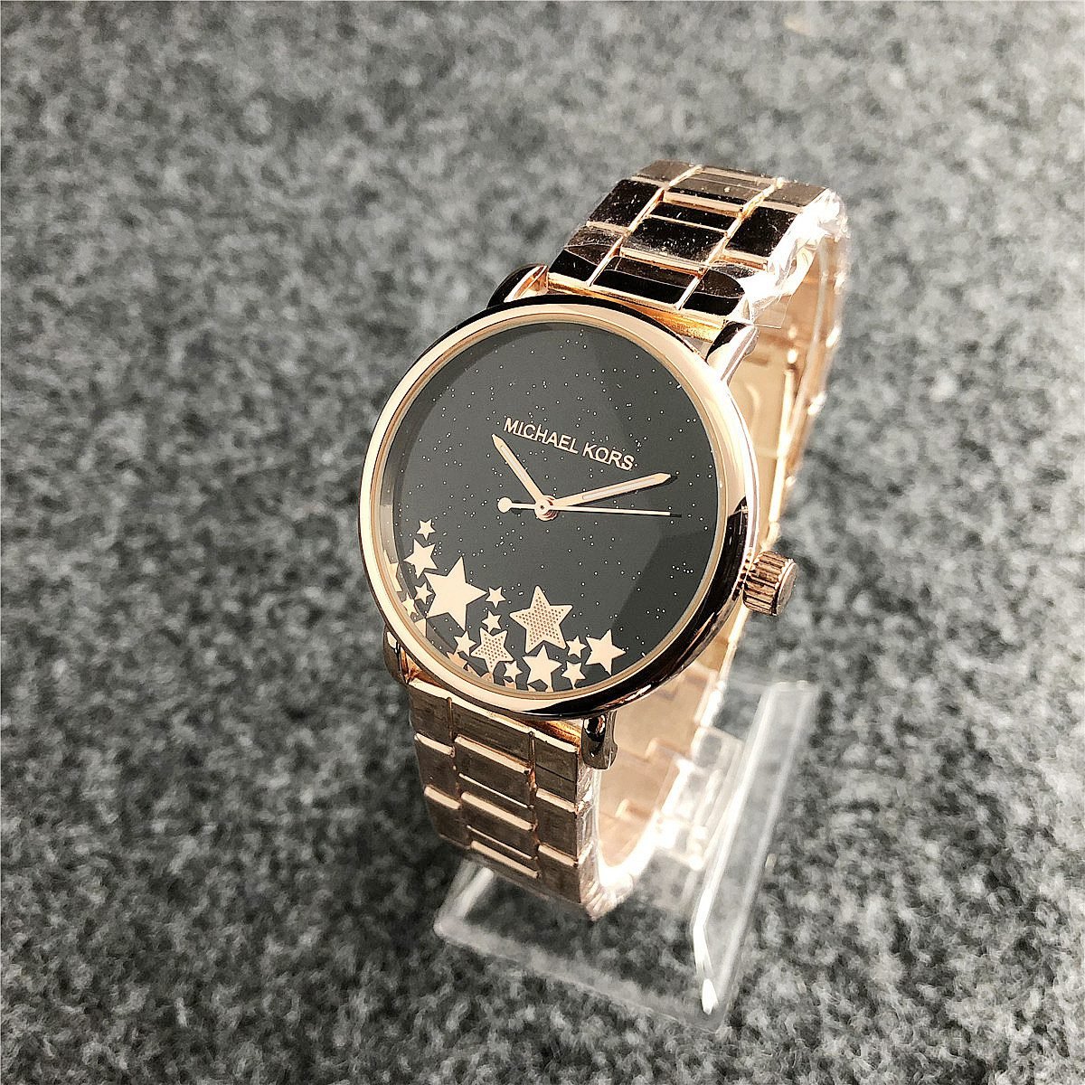The design style of MK watches combines fashion and luxury, emphasizing the presentation of details and craftsmanship.