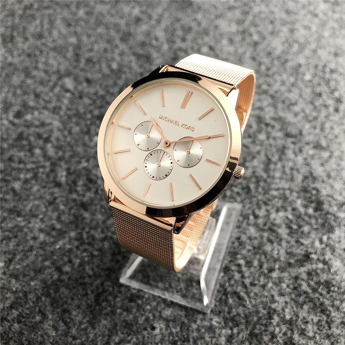 The design style of MK watches combines fashion and luxury, emphasizing the presentation of details and craftsmanship.