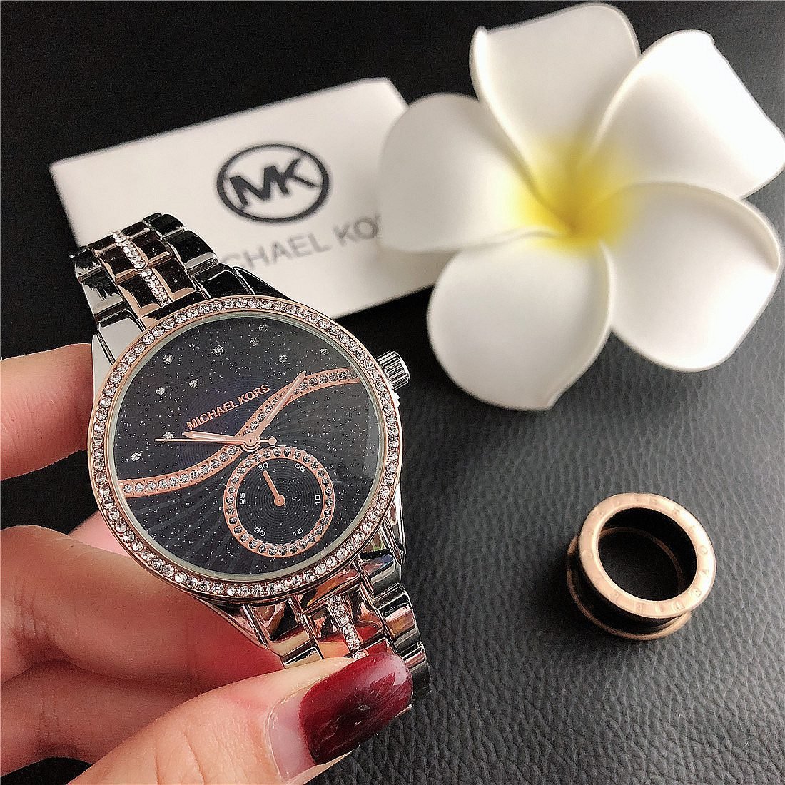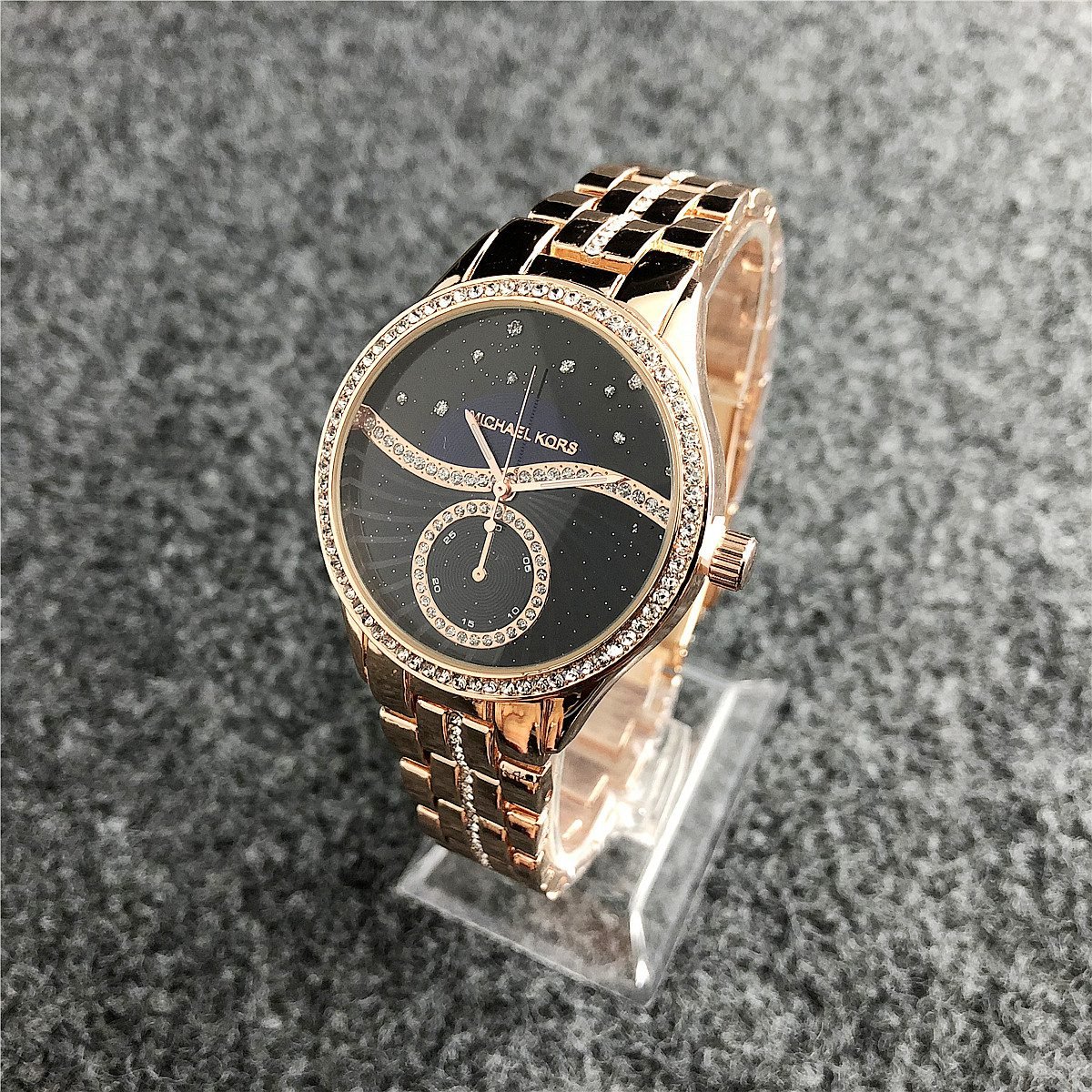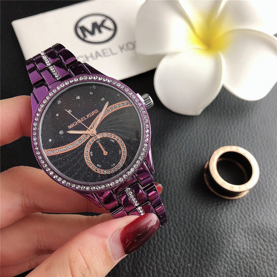 The design style of MK watches combines fashion and luxury, emphasizing the presentation of details and craftsmanship.