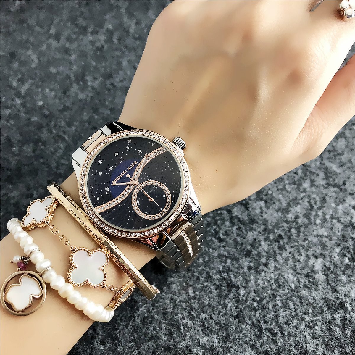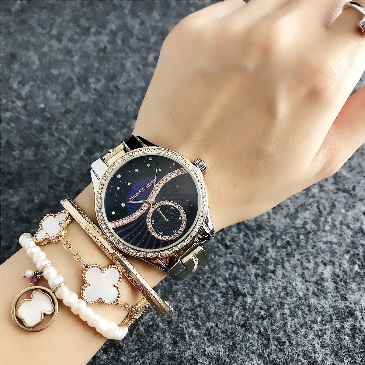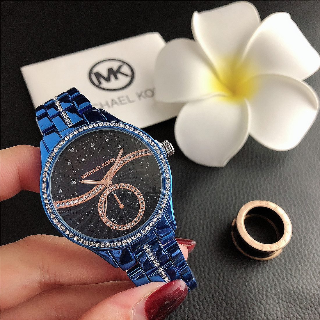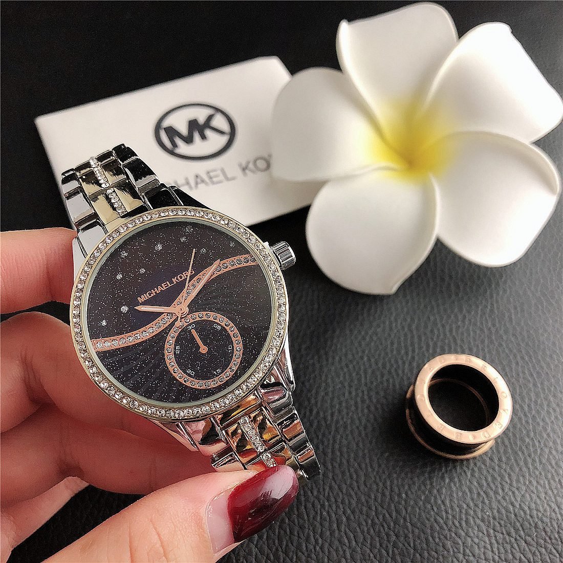 The design style of MK watches combines fashion and luxury, emphasizing the presentation of details and craftsmanship.