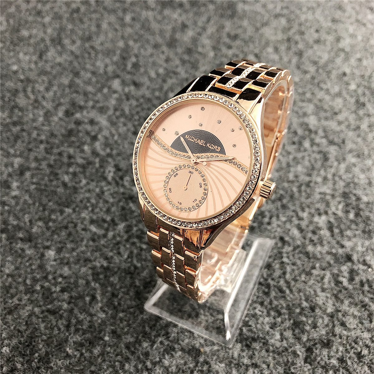 The design style of MK watches combines fashion and luxury, emphasizing the presentation of details and craftsmanship.