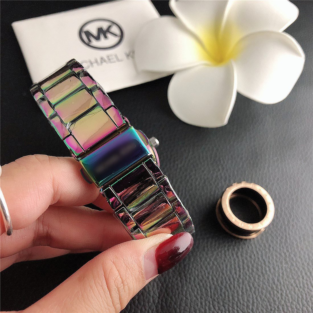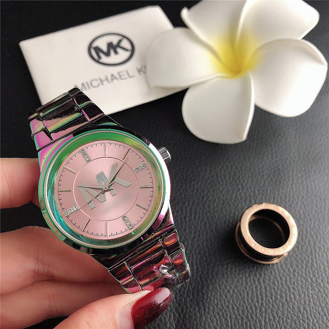 The design style of MK watches combines fashion and luxury, emphasizing the presentation of details and craftsmanship.