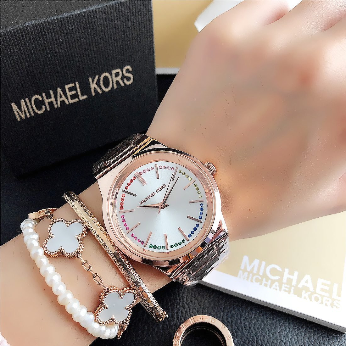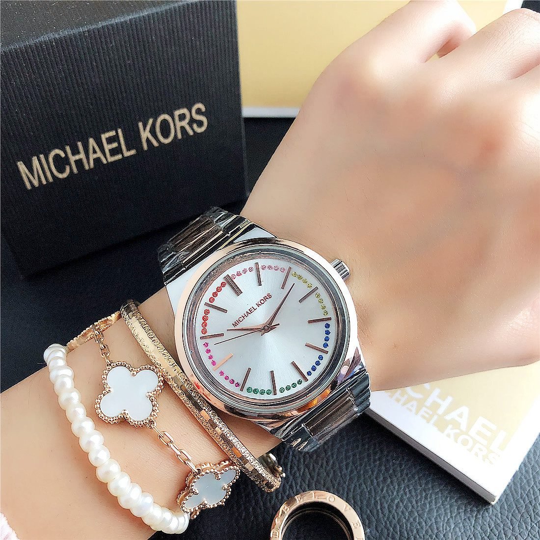 The design style of MK watches combines fashion and luxury, emphasizing the presentation of details and craftsmanship.