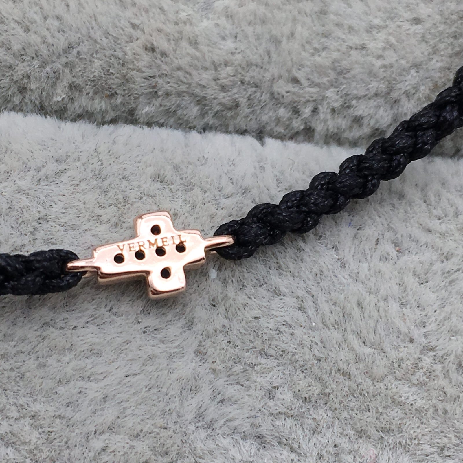 Motif cross Bracelet in Rose Silver Vermeil with Spinels and black Cord