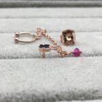 Motif Earring in Rose Silver Vermeil with Spinels and Ruby