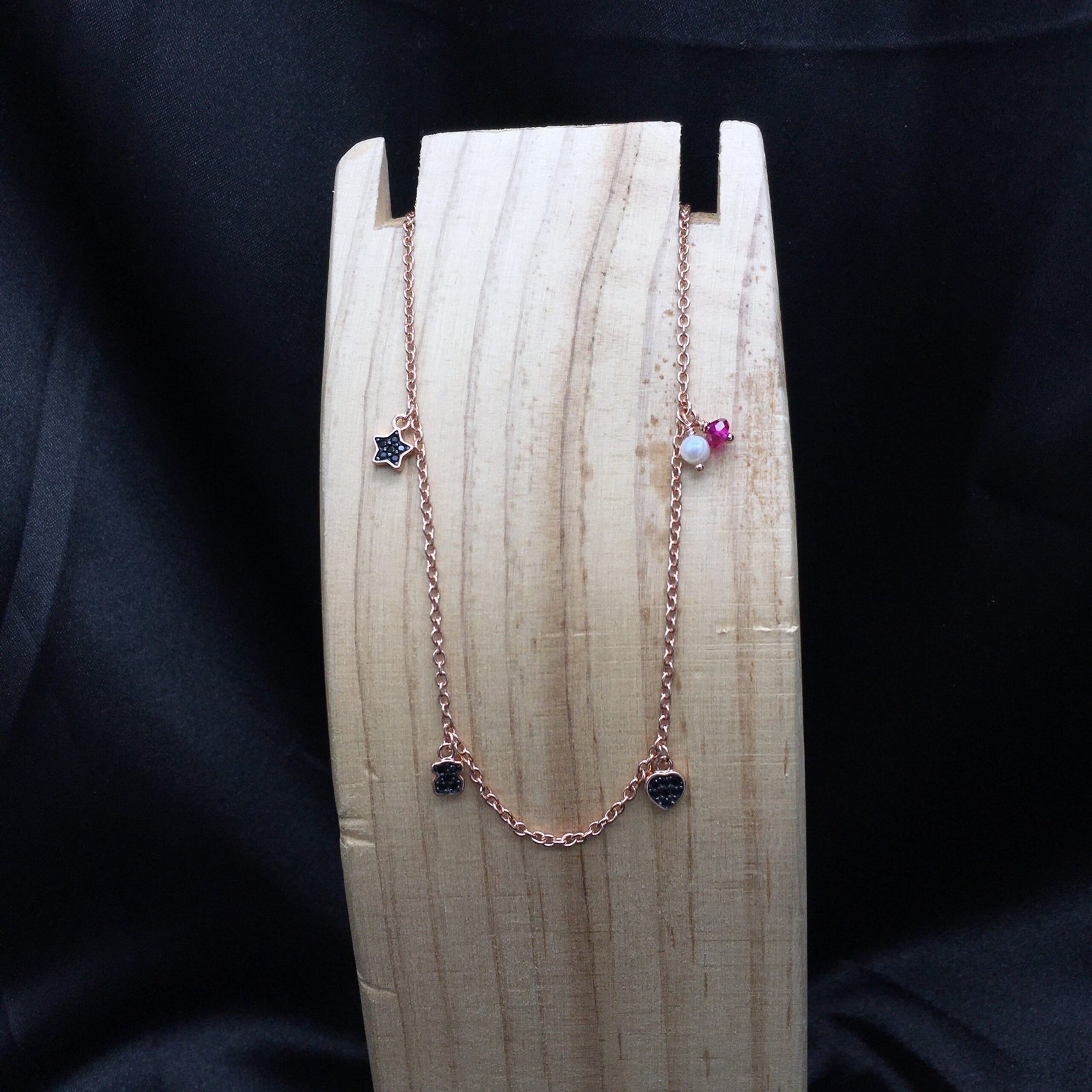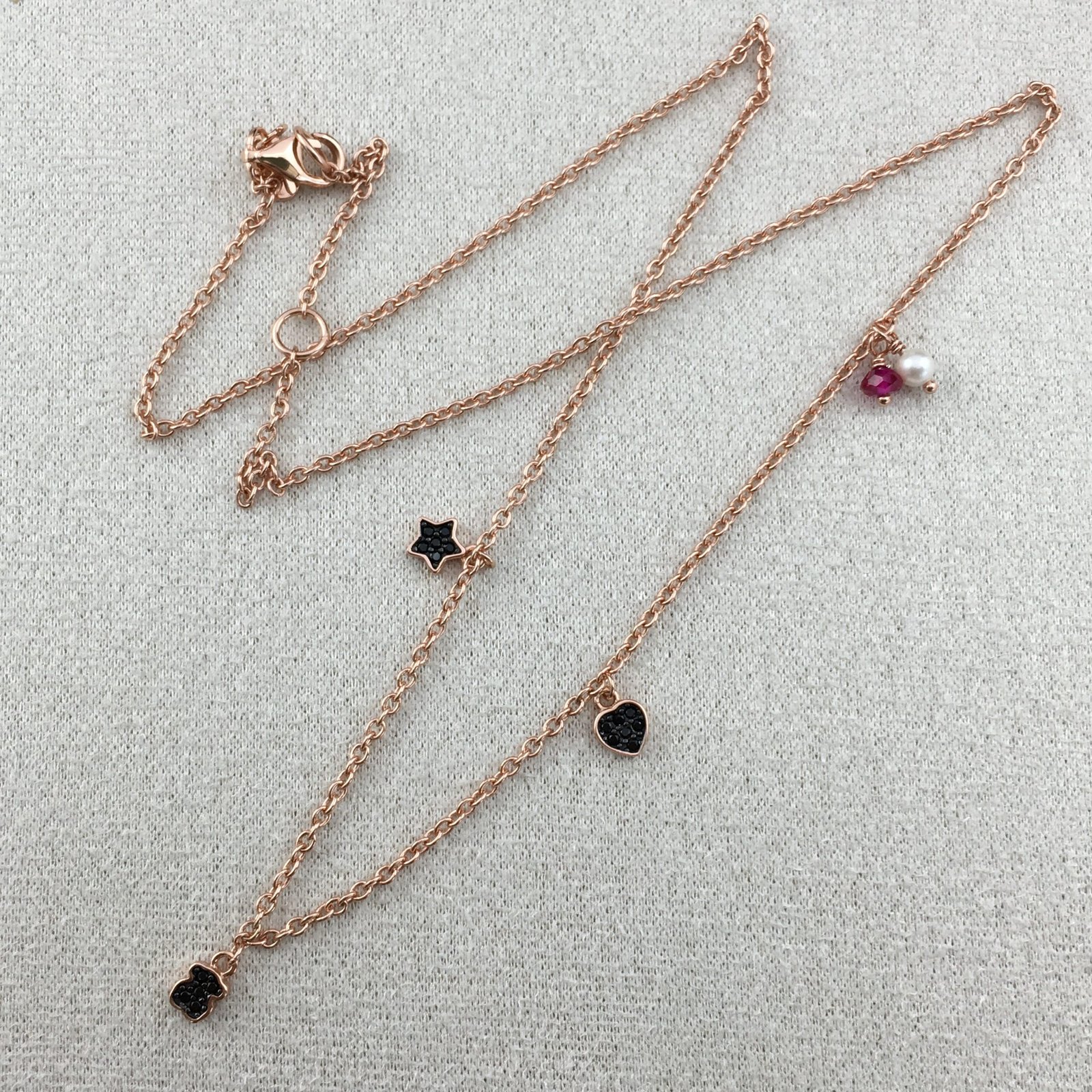 Motif Necklace in Rose Silver Vermeil with Spinels, Ruby and Pearl