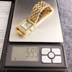 Tank Française watch, small model, quartz movement. Case in 18K yellow gold (750/1000). Faceted crown in 18K yellow gold 750/1000