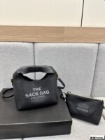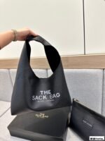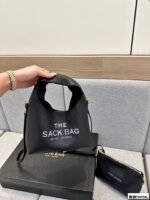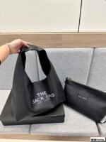 Home BAGS Marc jacobs-BAG New fashion trend classic black lychee patterned cowhide tote bag with diagonal cross, suitable for daily travel and gatherings