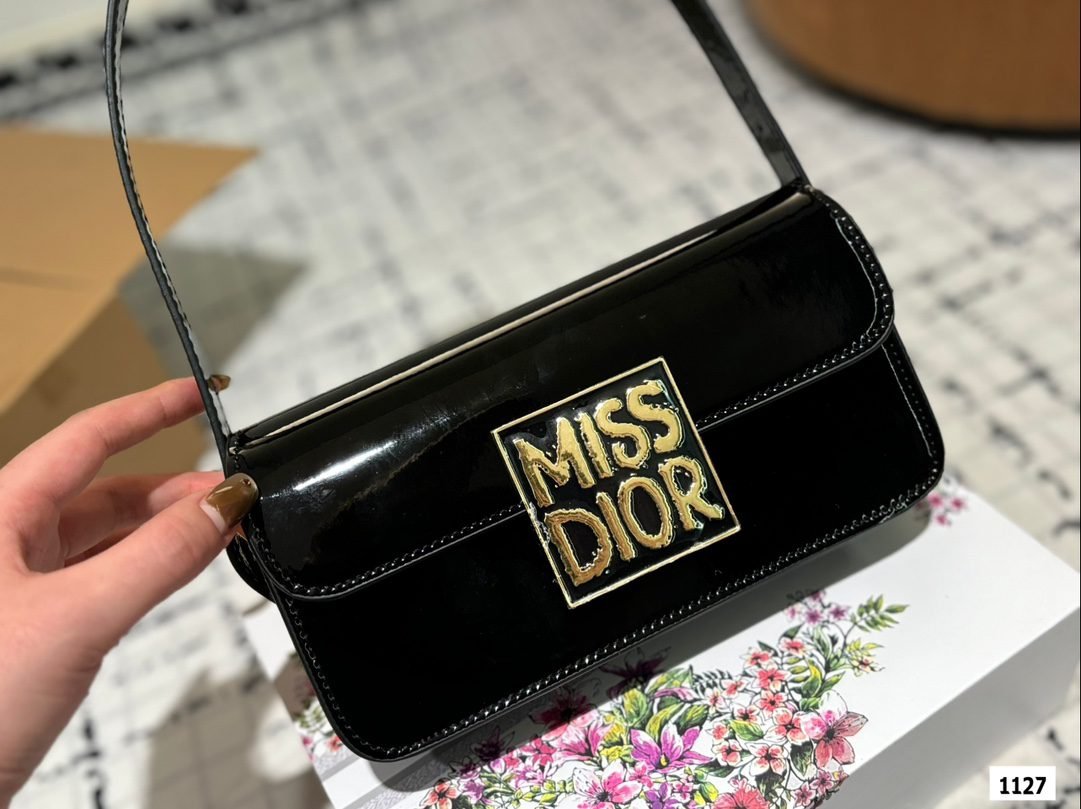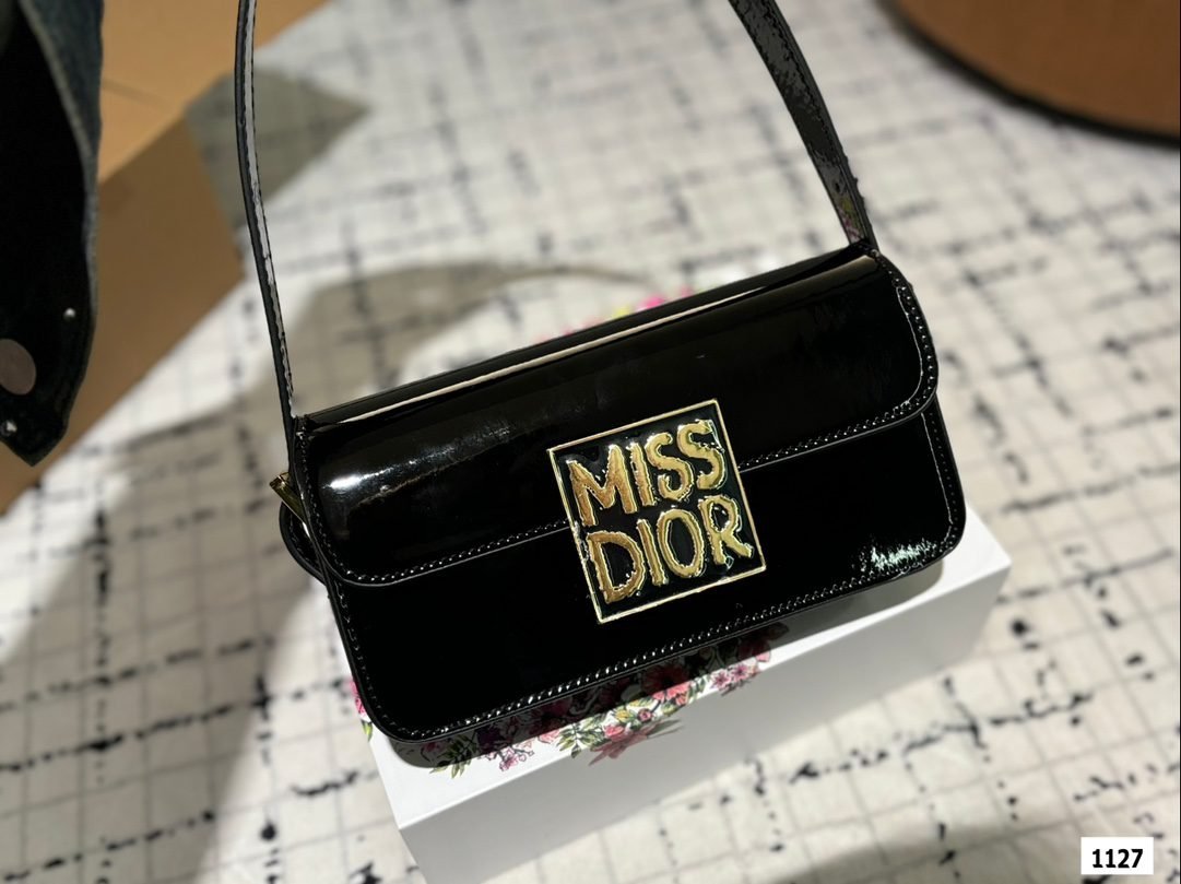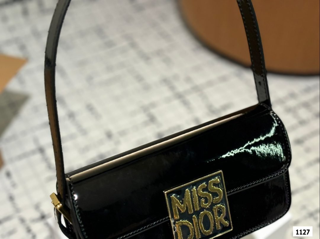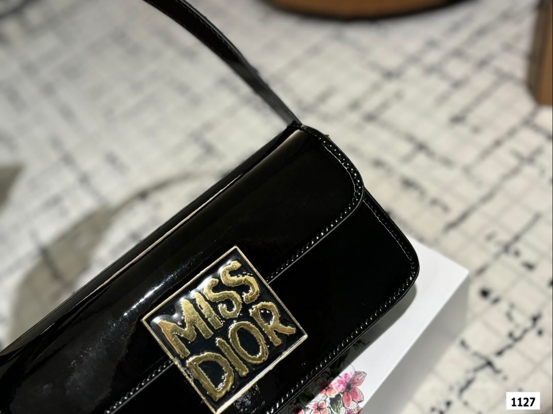 Home BAGS DIOR-BAG New flip up handbag, with a modern and elegant temperament of classic style. Crafted with black patent leather and cowhide, paired with contrasting fashionable Faurecia metal accents, adorned with the classic features of this collection