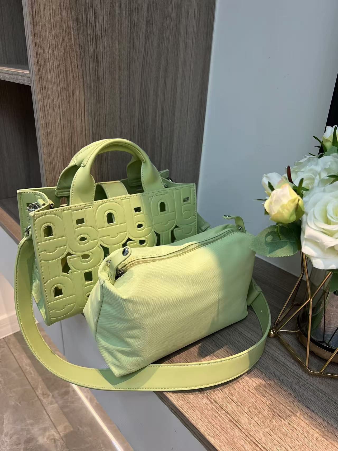 Be the first to review “New high-end candy color messenger bag ladies handbag hollow letter design” Cancel reply