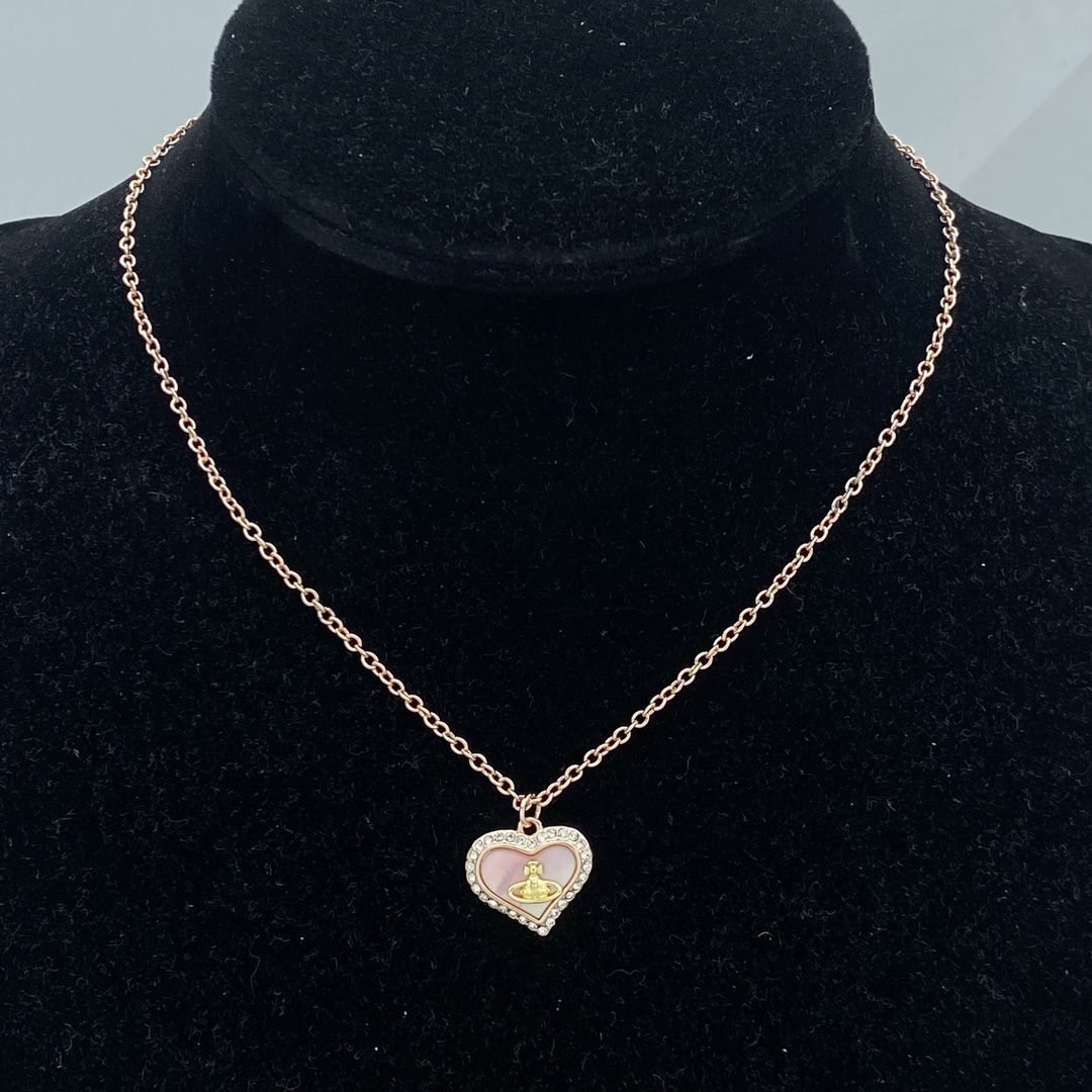 Home JEWELRY Vivienne Westwood Jewelry Vivienne Westwood Necklace New Pink Heart Shape Planet Pattern Necklace Women’s High-end Jewelry