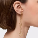 New Silueta single long earring with 18kt gold plating over silver and motifs. Motifs: 14.5 mm heart and 16 mm bear. Earring size: 90 mm. Piece made of sterling silver with 18 to 23kt gold plating with a thickness of 3 microns. This quality guarantees a greater durability of the jewel.