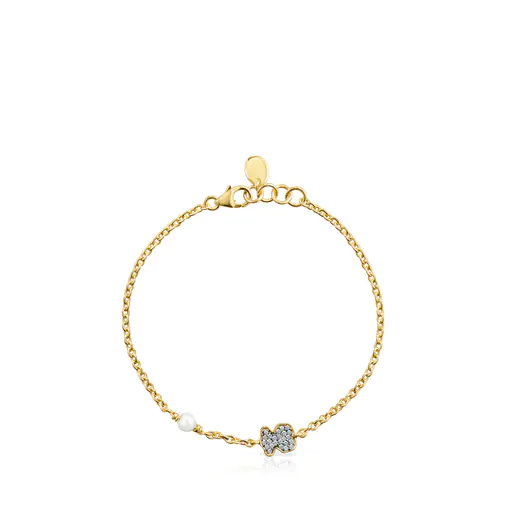 Home JEWELRY TOUS TOUS bracelet Nocturne bear Bracelet in Silver Vermeil with Diamonds and Pearl
