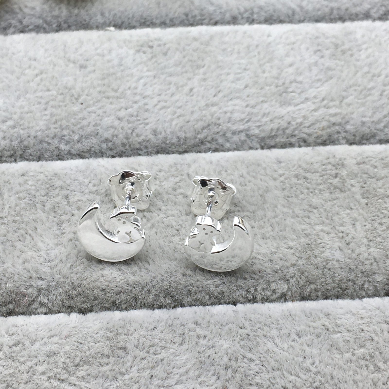 New product Shannon Goose 2021 new moon asymmetrical double c crystal pearl stud earrings fairy appearance level ????‍♀️ z batch
