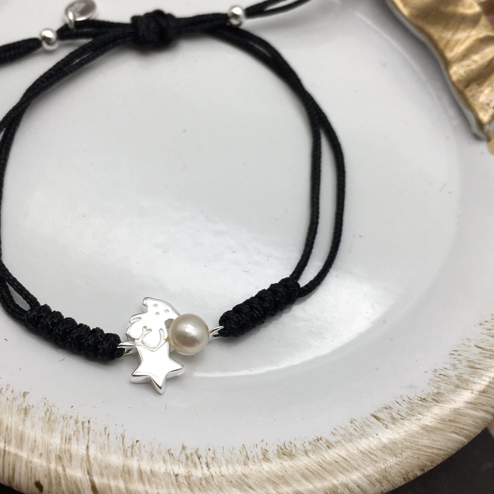 Be the first to review “Nocturne Silver Bracelet with Pearl and Black Cord” Cancel reply