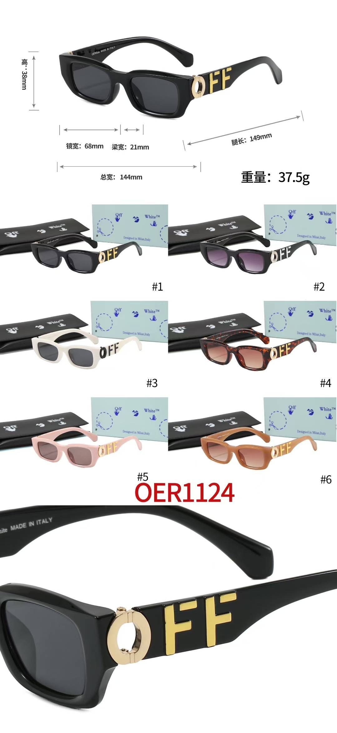 Off – White OER1124 series sunglasses boast distinctive “OFF” branding on the arms, merging fashion and brand identity seamlessly. With a range of colors including classic black, gradient purple, pure white, tortoiseshell, soft pink, and warm brown, there’s a pair to suit every style preference. These sunglasses, with their chic design and comfortable fit, are ideal for elevating your daily outfits, whether you’re going for a casual or a more polished look.