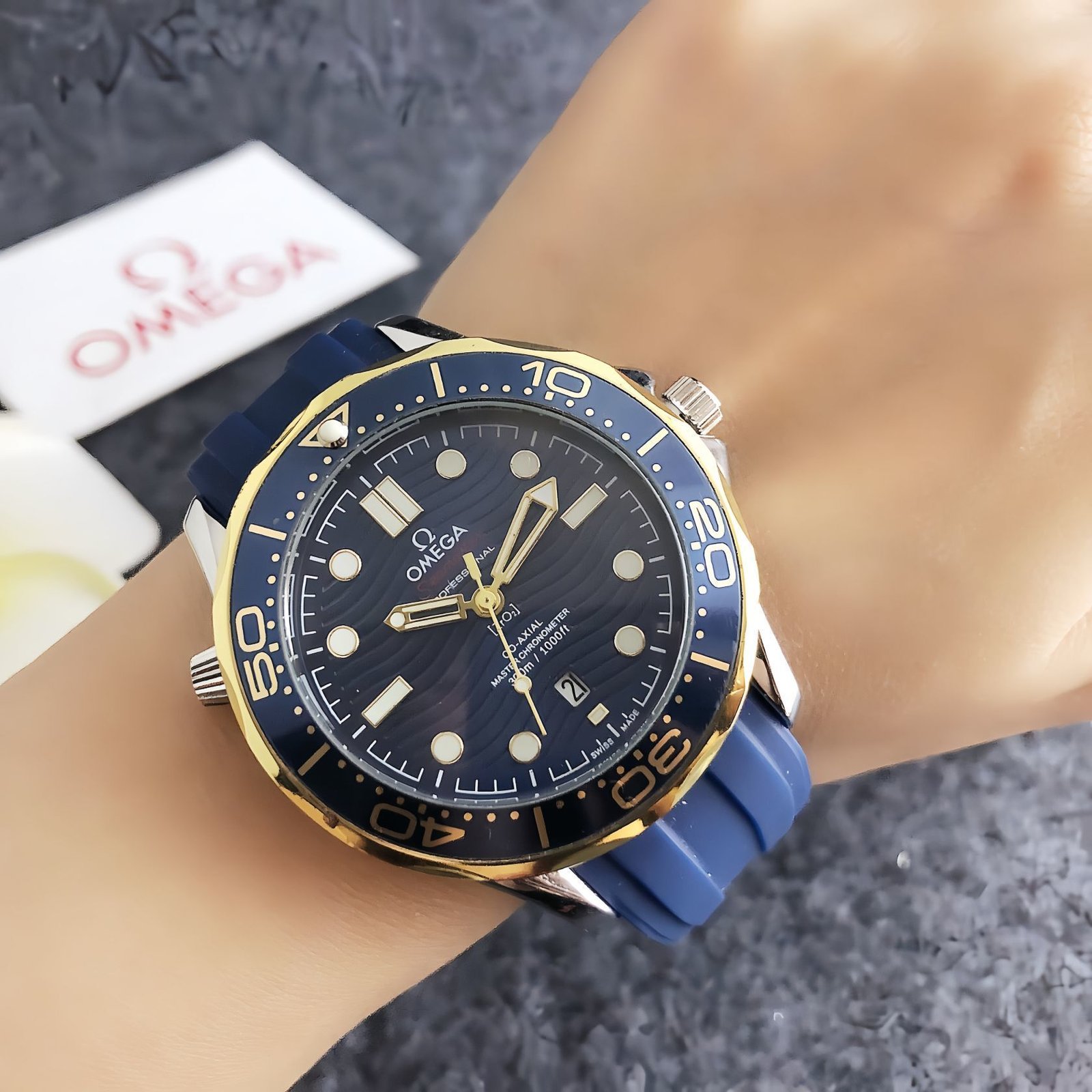 Omega 3452JD series watches embody the brand’s iconic dive-watch heritage with a vibrant modern twist, featuring distinct circular dials, colorful rubber straps in shades like blue, green, and brown, and precise timekeeping functionality. With Omega’s signature attention to detail and legacy of engineering excellence, these timepieces exude rugged yet stylish charm. Perfect for those who appreciate a blend of classic dive style and contemporary color versatility, they make a dynamic statement suitable for both aquatic adventures and everyday urban wear.