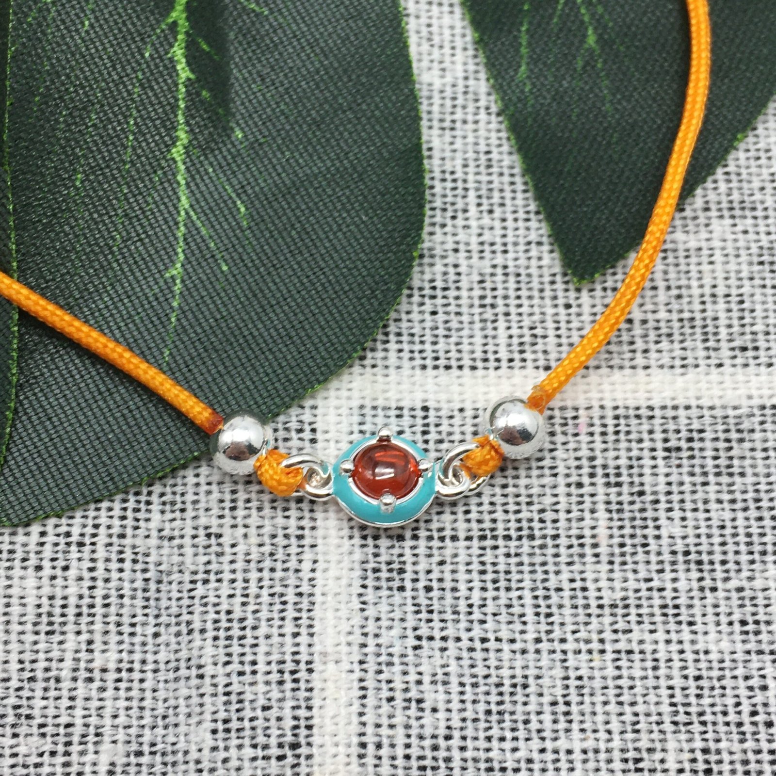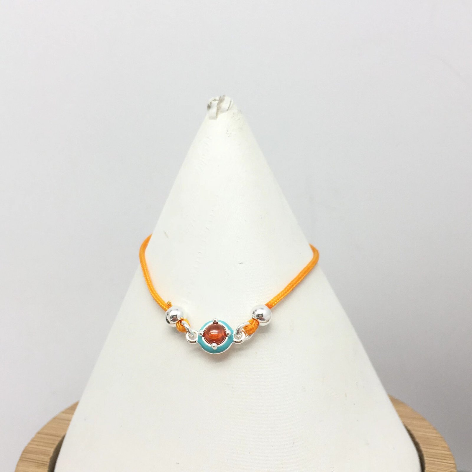 Pick up the good vibrations with your favorite jewelry! This orange cord bracelet with a carnelian gemstone and blue colored enamel belongs to the Vibrant Colors collection. Recharge your energy with jewelry inspired by the joy of summer.