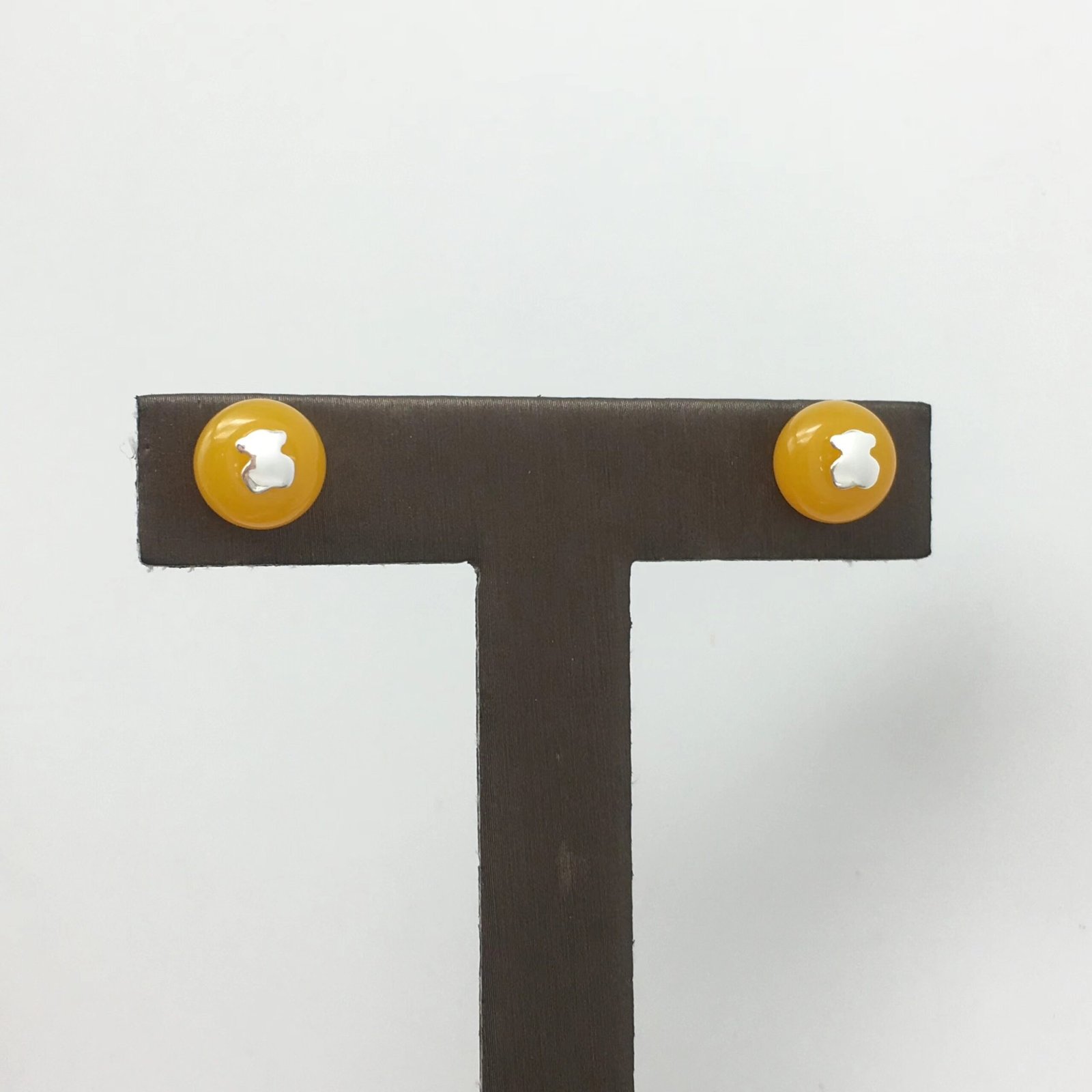 TOUS Icon Glass earrings in sterling silver and orange colored Murano glass with a bear motif in sterling silver. Size: Ø 10 mm. Push back.