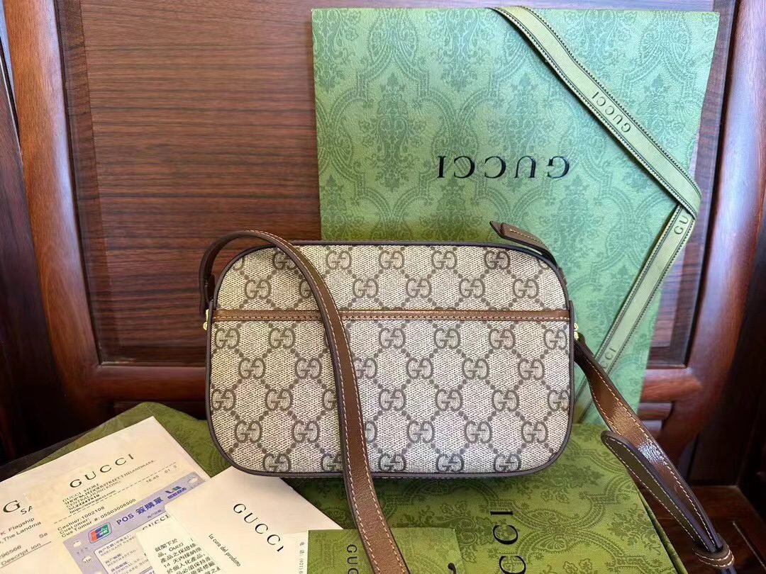 [Original leather] The new series presents the Gucci 760196Horsebit 1955 series small shoulder bag, which has both versatile features and practical functions. This shoulder bag is crafted in classic beige and ebony GG Supreme canvas. The zipper closure and adjustable shoulder straps make the entire design fuller! Size: 20/13/6cm [with original factory packaging]