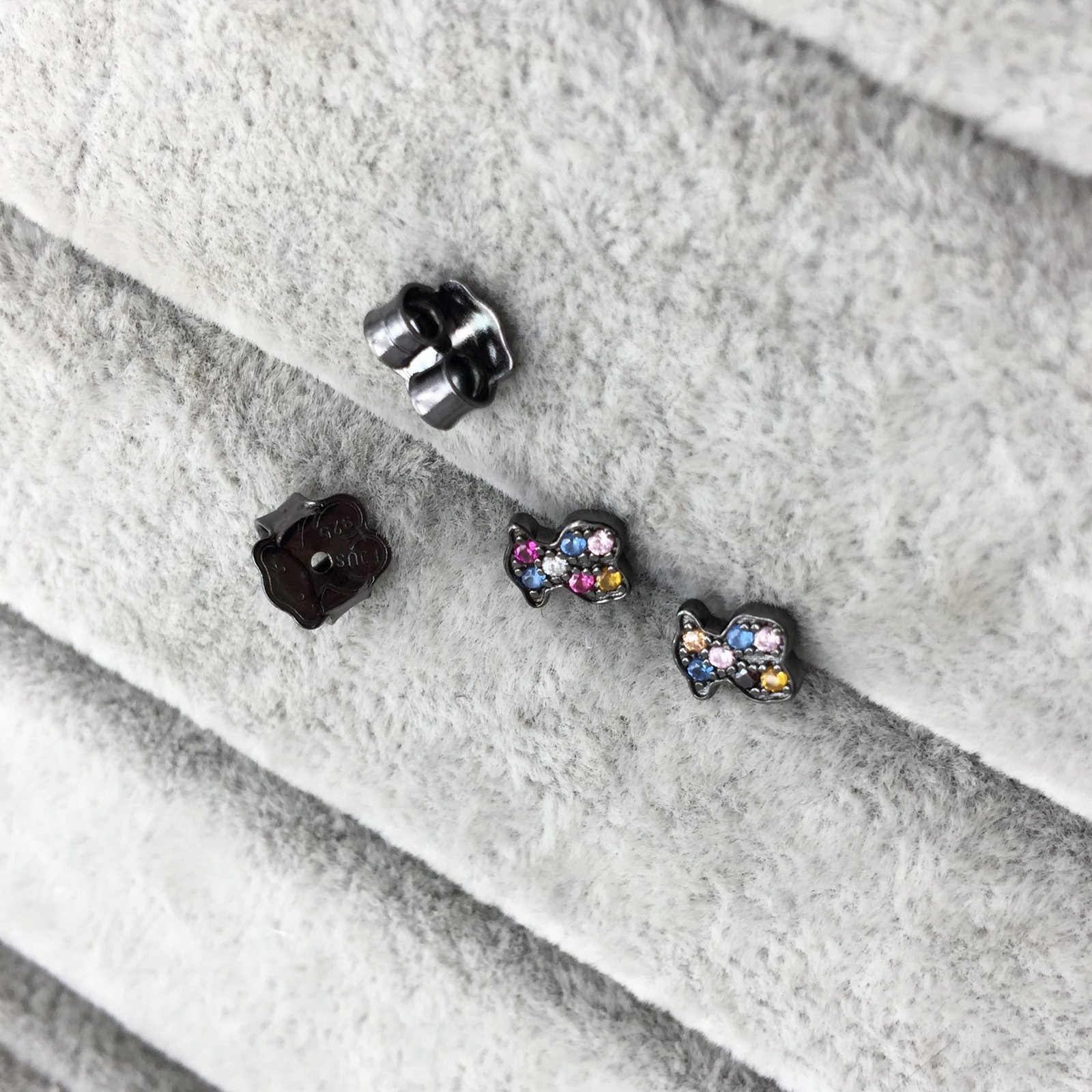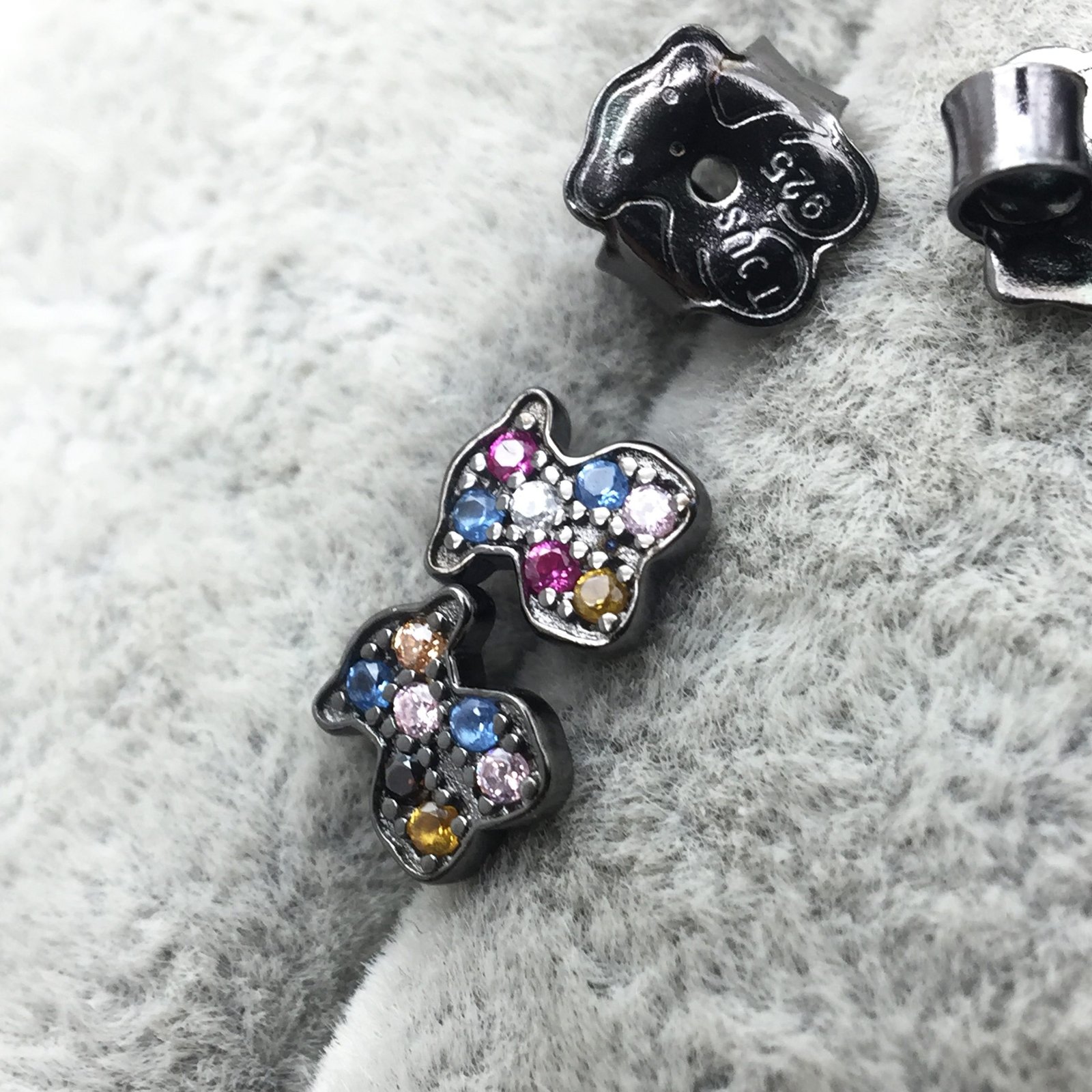 TOUS Fantasy earrings in oxidized sterling silver with multicolor sapphires. Size: 0.64 cm. Push back.