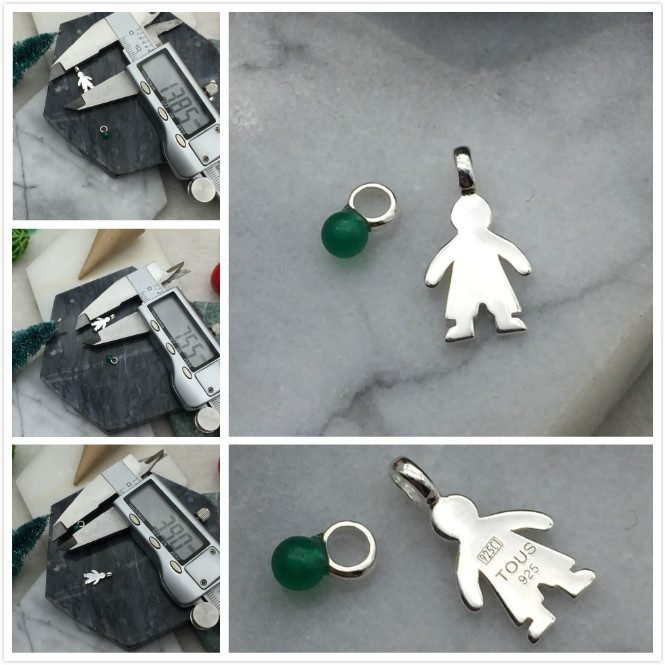 Pack of TOUS Sweet Dolls boy pendants in sterling silver and chrysoprase. Size: 1 cm. Does not include chain.