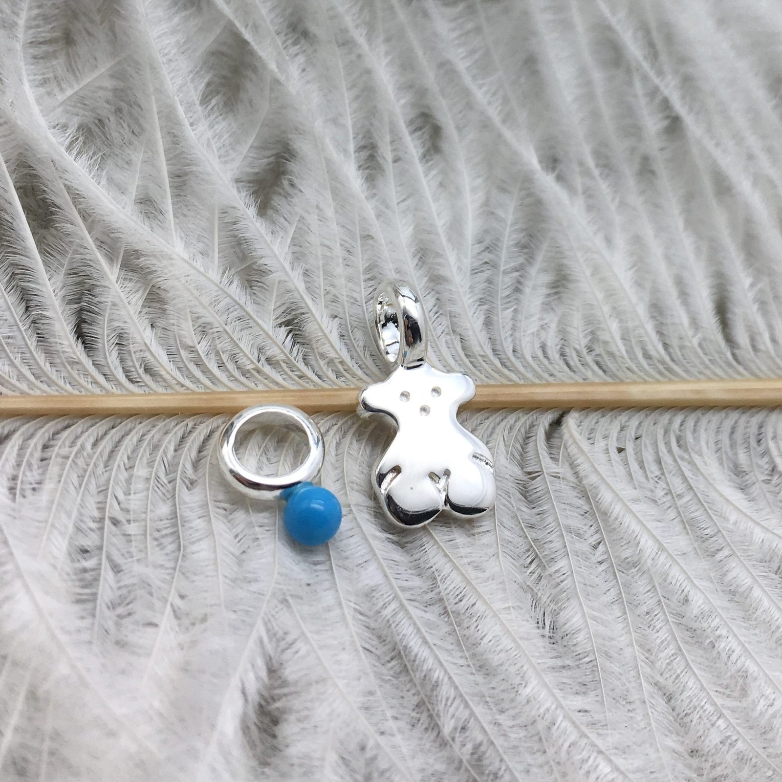Pack of TOUS Sweet Dolls bear pendants in sterling silver and howlite. Size: 0.85 cm. Does not include chain.