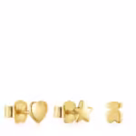 Pack of three TOUS Bold Motif 18kt gold plating over silver earrings with heart, bear and star motifs. Size of motifs: 5.6 mm. Push back.