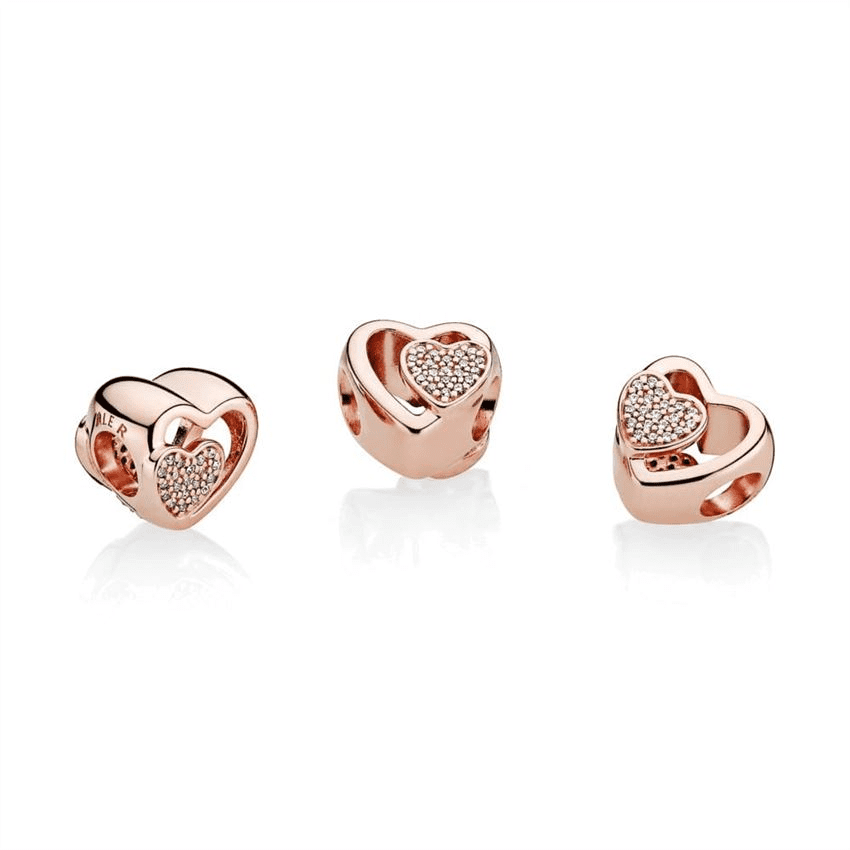 Pandora 925 Silver 781806CZ Rose Gold Heart Shaped Bead with Advanced Multi Diamond Honey Set, Sparkling Heart Center Fashion Jewelry