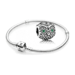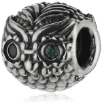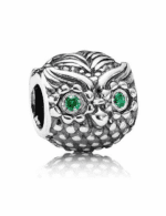 Pandora 925 Silver 791211CZN Owl High Grade Eyes Set with Green Diamonds and Green White Stones Set with Owl Shaped Design Beads