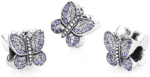 Pandora 925 Silver 791257 ACZ Exquisite Purple Butterfly Beads Shining Butterfly Bracelets Romantic Noble Sparkling Jewelry
