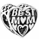 Pandora 925 Silver 791882 “Best Mom” hollowed out heart-shaped string decoration