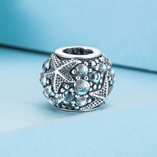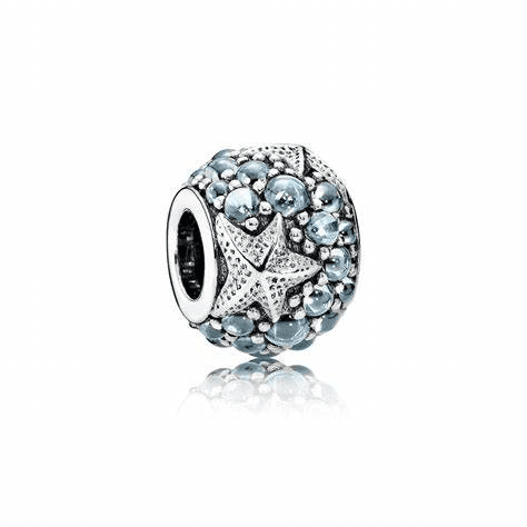 Pandora 925 silver 791905CZF blue multi diamond inlay with high-end fashion beading, blue starfish versatile string decoration