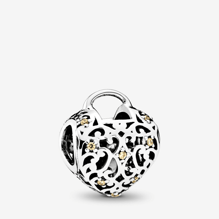 Pandora 925 Silver 791952FCZ Advanced Blessing Safety Lock Bead Heart shaped Hollow String Decoration Yellow Inlaid Diamond Advanced Sparkling Jewelry