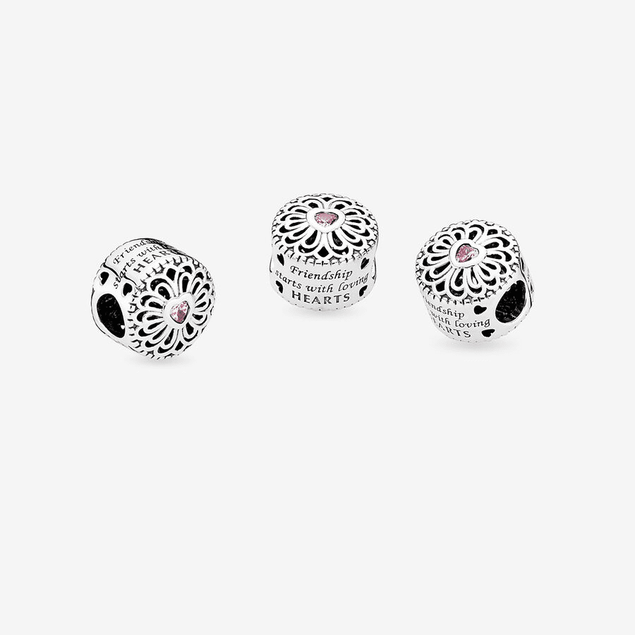 Pandora 925 silver 791955PCZ heart-shaped hollow high-end string decoration versatile pink gemstone bead fashion accessory