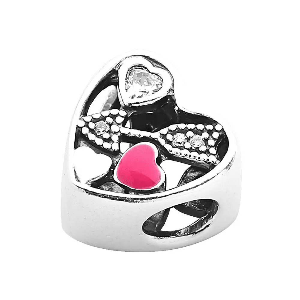 Pandora 925 silver 792039CZ hollow diamond heart bead pink enamel string decoration high-end fashion accessory