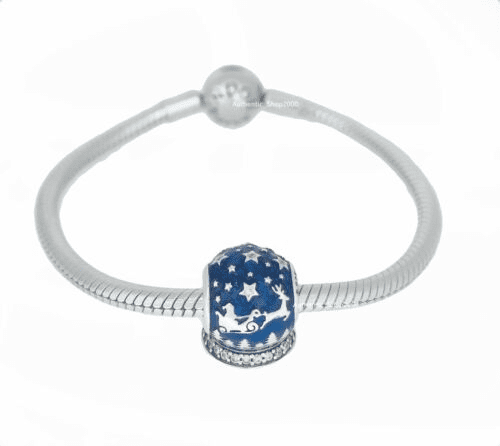 Pandora 925 silver 796386EN63 blue cute circular bead Santa Claus reindeer string decoration fashionable high-end deep blue decoration