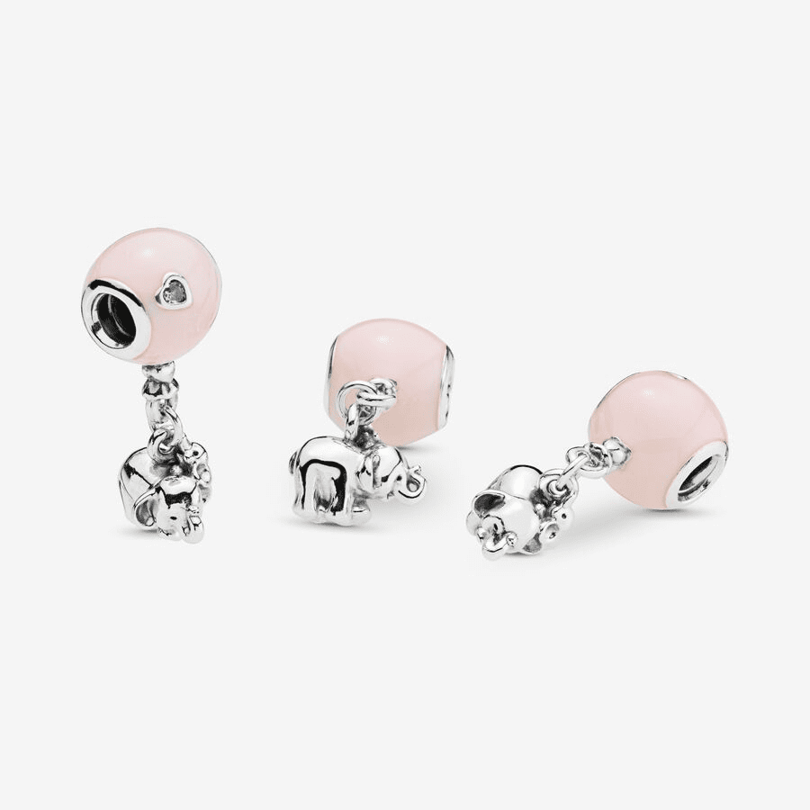 Pandora 925 silver 797239EN160 pink enamel spherical ring cute elephant and animal bead