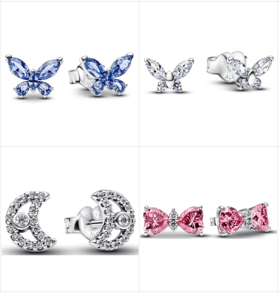 This Pandora earring collection features enchanting designs like butterfly, crescent moon, and bow motifs, adorned with shimmering gemstones. Each pair is crafted with meticulous attention to detail, blending playful charm with sophisticated sparkle. Perfect for those who love to express their style through delicate, eye-catching jewelry, these earrings embody Pandora’s legacy of craftsmanship and creativity—ideal for adding a touch of magic to any look, whether for everyday wear or special occasions.