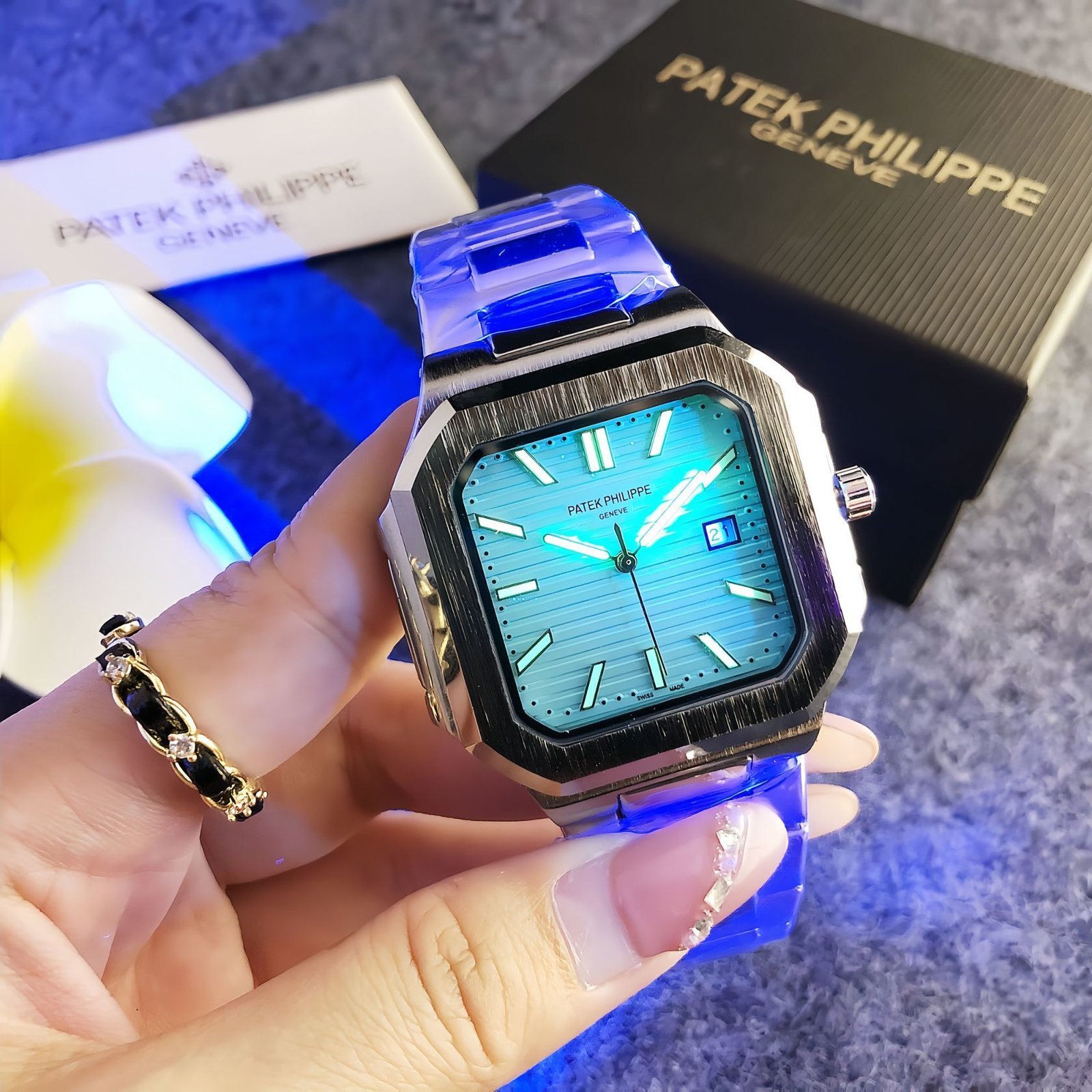 Patek Philippe 3260D series watches epitomize Swiss haute horlogerie, featuring the brand’s distinctive octagonal case, metal bracelets in styles like two-tone, gold, and silver, and dials in sophisticated hues like gray, gold, light blue, and more. With Patek Philippe’s legacy of unparalleled craftsmanship and attention to detail, these timepieces exude timeless luxury. Perfect for those who appreciate a blend of unique geometric design and opulent sophistication, they make a refined statement suitable for both formal occasions and everyday wear.